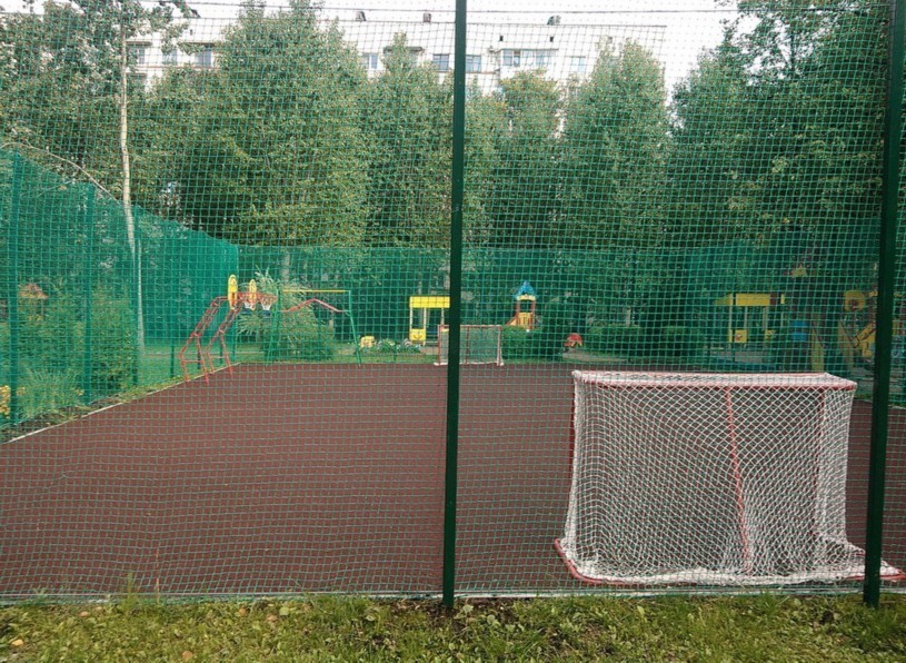 Установлена заградительная сетка вокруг благоустроенной спортивной площадки,